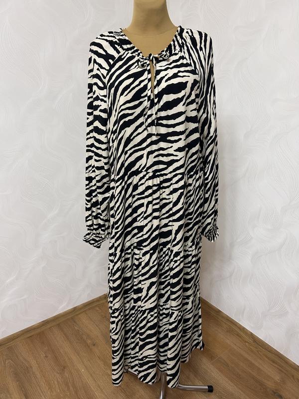 Ярусна сукня оверсайз із актуальним анімалістичним принтом,By Bery,100% ніжної віскози. Розмір 18 Нове,не носилося,без паперової етикетки Підійде орієнтовно на 54-56р Довжина 130 см,до шва 43 см Пог 60-63 см Піт 54-56 см Поб 66-70 см Рукав від краю горловини 78 см, 26 см Арт 6251.42