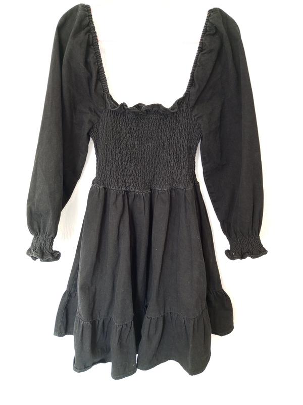 Невероятно красивое платье из денима, отлично держит форму. Размер С-М груди резинка 32-48 Пот резинка 30-43 рукав 60 длина 90 Стан замечательный