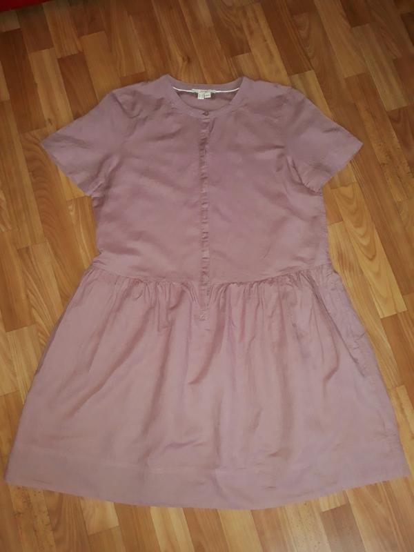 Классное платье на лето!Состав:60% лен,40% коттон.Замеры:ПОГ 54 см,ПОТ 54 см,ПОБ 56 см.Длина 95 см,длина рукавов от шва 21 см.Застегивается на пуговицы.Без подклада.В боковых швах карманы.
