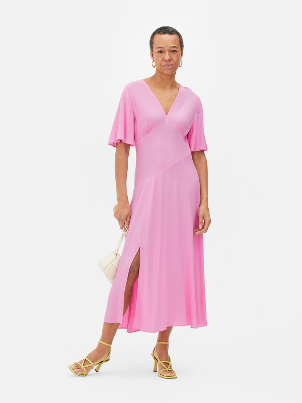 Очень красивое нежно розовое миди платье от Primark, размер 12/40, 100% вискоза Длина 125 см, длина рукава 28 см, плечи 40 см, полуобъем груди 49 см, полуобъем талии 44 см, полуобъем бедер 58 см *11.2.1