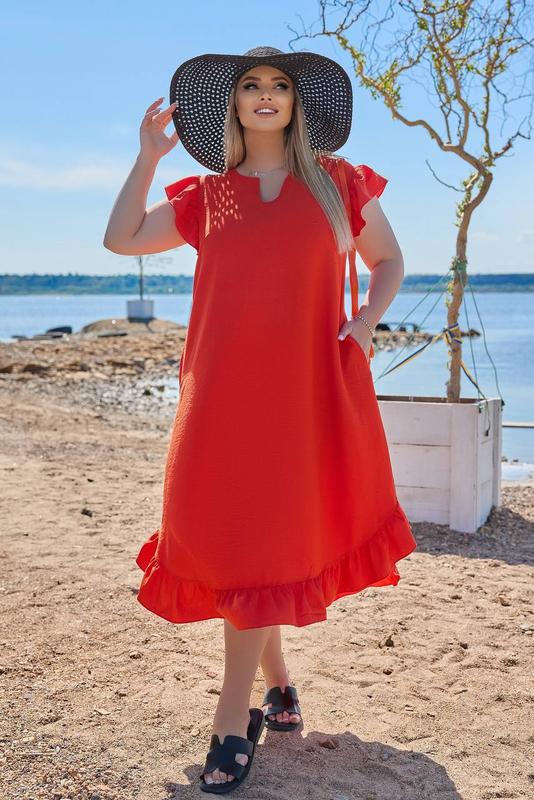 🔥🔥🔥 невероятно шикарное платье🔥🔥🔥 Сукня мод 1568 Размер 50-52,54-56,58-60,62-64 Тканина - льон. Супер качество! Цвет: апельсин, Без лишних слов, это просто one love ❤️ Самое модное, шикарное, яркое платье из льна создает легкость и комфорт, смотрится эффектно, элегантно и стильно. Платье свободного кроя, не просвечивает, дышащее, с рукавами-крылышками, по бокам с карманами, низ платья окантован воланом. идеальный шикарный образ для любого повода Замеры: 50-52: ог-108, вот- 116, ос-130, длина платья- 106 см. 54-56: ог-116, от-122, ос-138, длина платья-109 см. 58-60: ог-124,от -128, ос-146, длина платья- 110 см. 62-64: ог -132, вот- 136, ос-154, длина платья- 112 см. Летт