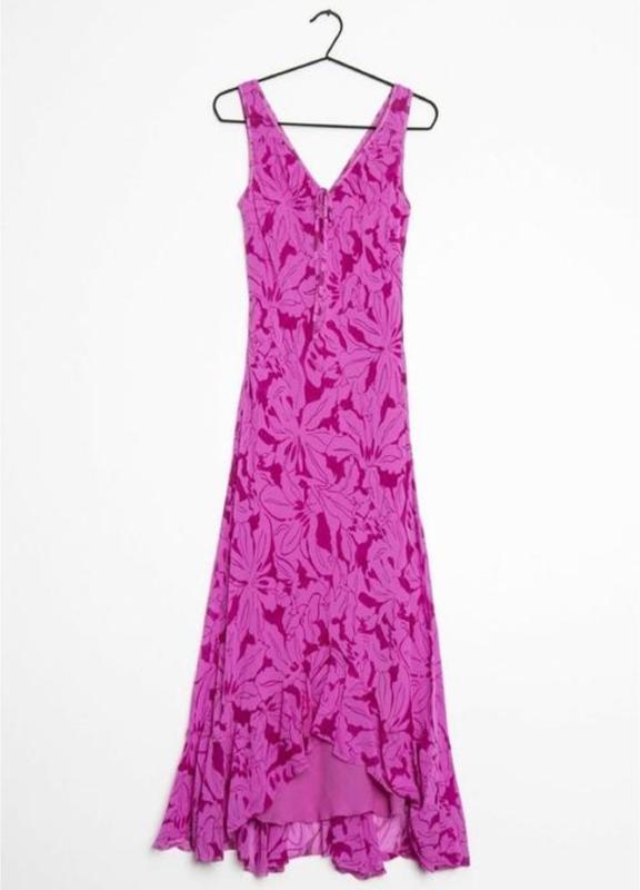 Неймовірно красива сукня міді з натурального шовку, актуальна довжина, легка тканина. Сукня міді у квітковий принт V виріз, крій по косій, асиметричний низ із рюшкою Бренд: Monsoon Склад: 100% шовк, підкладка: 100% поліестер Довжина 130 см ПОГ 48 см ПОТ 42 см ПОБ 55 см Крій по косій гарно лягає по фігурі різних параметрів Одіто на параметри ПОГ 86 см ПОТ 60 см ПОБ 96 см Стан нової