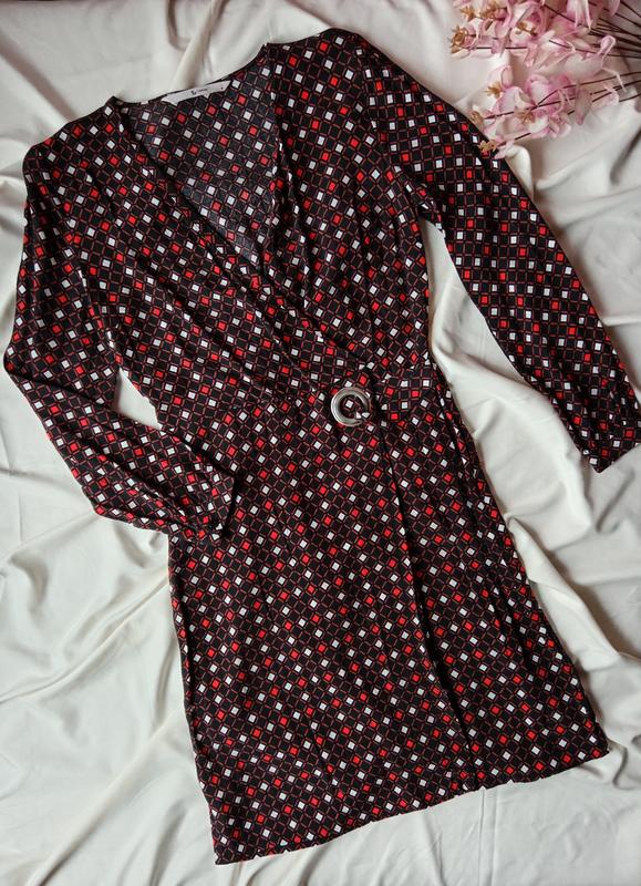 Платье с v-образным вырезом, в геометрический принт, имитация на запах, размер 44
