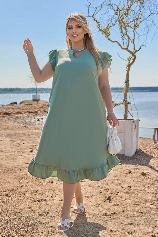 ‼️ОТПРАВЛЕНИЕ ВПРОДОВЖ 2-5 РАБОЧЫХ ДНЕВ!!️ФОТО РЕАЛ ‼️ Невероятно шикарное платье Размер: 50-52, 54-56, 58-60, 62-64 Тканина: льон. Супер качество! Цвет: оранжевый, малина, зеленый, электрик, голубой, оливка. Платье свободного кроя, не просвечивает, дышащее, с рукавами крылышками, по бокам с карманами, низ платья окантован воланом. мод 1568VL