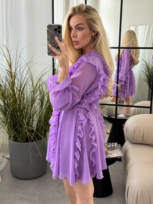 Шифонова сукня🖤 Model: 840 Material: шифон Color: белый,розовый,голубой,желтый,лиловый,черный Size: S-L (универсал) Параметры изделия: Длина изделия 85 см Длина рукава 81 см ОГ 82 см (регулюються) ОТ 58-76 см (резинка) ОС 102-168 см 📌Нежное, легкое шифоновое платье на завязках. Количество воланов нивелирует ее прозрачность. На талии резинка,юбка двухслойная.