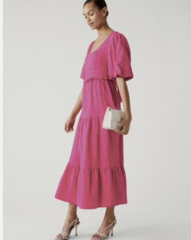 Новое Праздничное Платье миди Интересная структурная натуральная ткань Размер 14 довжина 132см.НОГ +- 53см.НОТ 43см.НОБ 84см