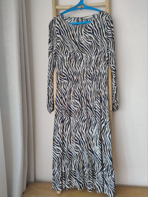Женское платье с анималистичным принтом из воздушной ткани. Стан идеален. В поясе вшита резинка. Бирку со складом срезала, на ощупь или тоненький хлопок, или вискоза. Ткань может слегка просвечивать (белье телесного цвета все решает). Замеры: длина 120 см. (от плеча до пояса 47 см, от пояса до низа 73 см.), рукав 64.5 см.. пояс 37 см. (максимально 50 см.).