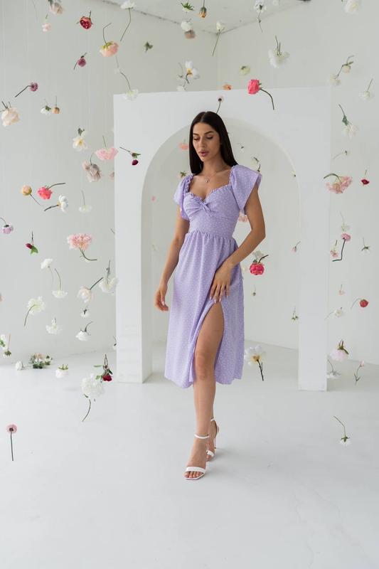 Жіноча сукня міді літня плаття на грудях завʼязка на спині корсетна шнурівка софт в горошо...