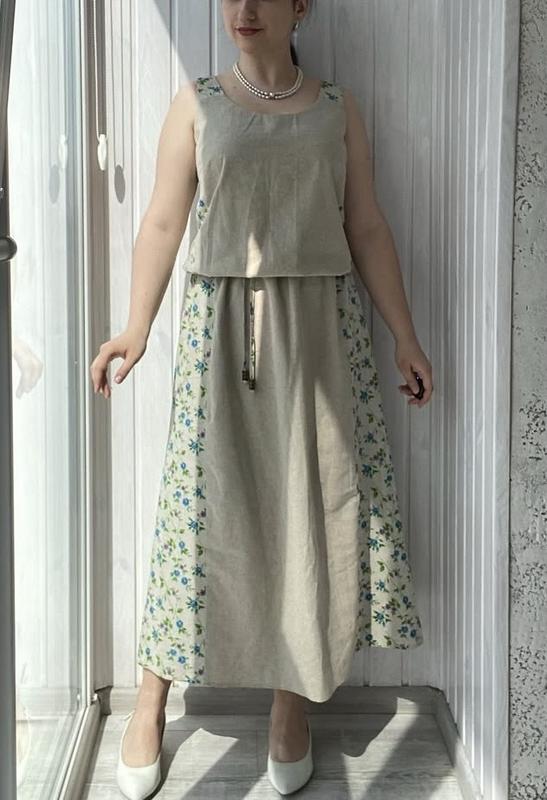 • Стан: ідеальний • Матеріал: льон • Розмір: М Напівобхват грудей 47 Напівоьхват талії 38-47 Напівохват стегон 60 Довжина топ 55 (йде із напуском) Довжина спідниці 84
