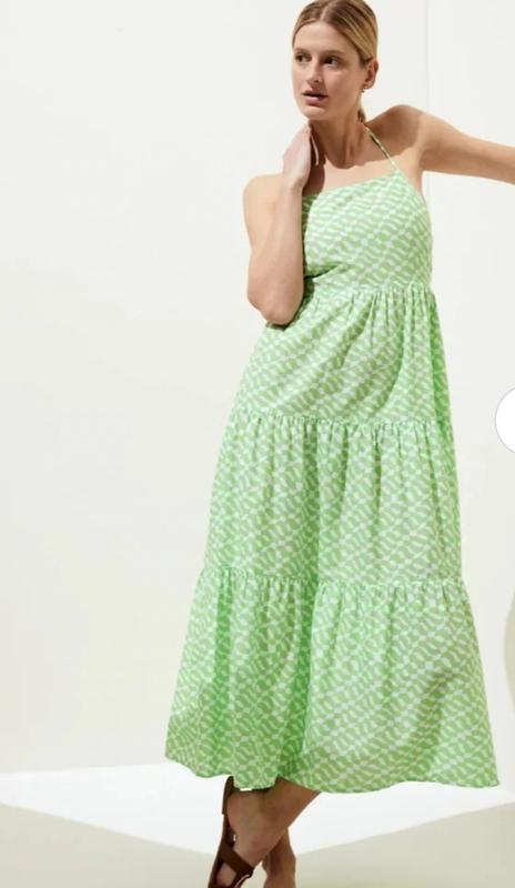 Ярусное платье миди с открытой спиной, хлопковое платье миди с открытой спиной