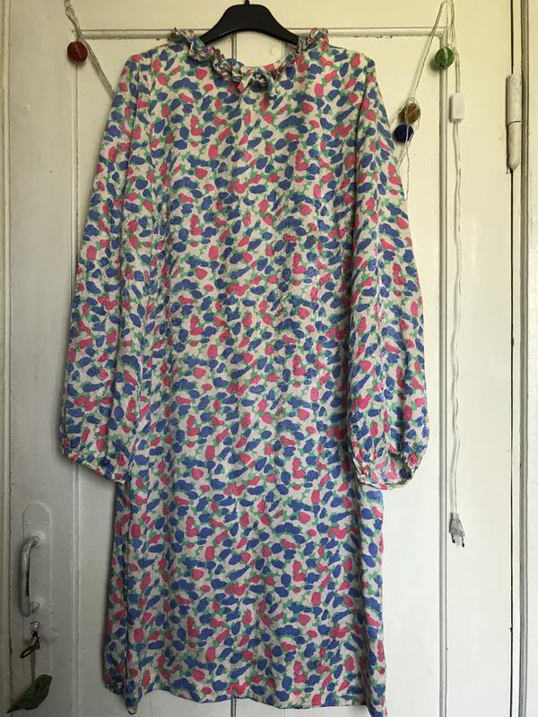 Із недоліків-розтягнулись ризинки на манжетах-потрібно замінити. Заміри: Довжина виробу 105 Ширина плечей 35 Горловина 16 Напівобхват грудей 49 Ширина по низу 55 Ширина пройми 24 Довжина рукава 61 Ширина рукава 22