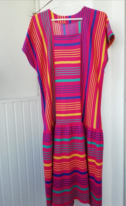 Платье в полоску, тонкий качественный трикотаж, не вытягивается, не кушлатие, не линяет. Длина 114см, ПОГ - 50см, ПОБ-54см.