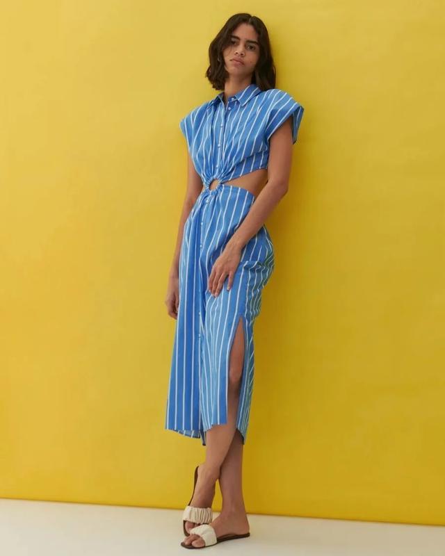Хлопковое платье миди в полоску от Reserved💙🤍 Стильный крой, 100% натуральная, длина меди, состояние идеальное☝🏻, как новая! Размер 38(М) Замеры: Пог-49см; Пот-36,5см(тянется до 46см); Пос-59см; Длина 120см.