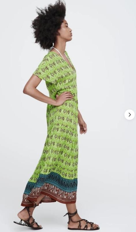 ПЛАТЬЕ МИДИ С ПРИНТОМ И ЗЕЛЕНЫМИ ПАНЕЛЬЮ ZARA ~ Размер M Пог46 Пряс42 Белра55 длина от плеча 125