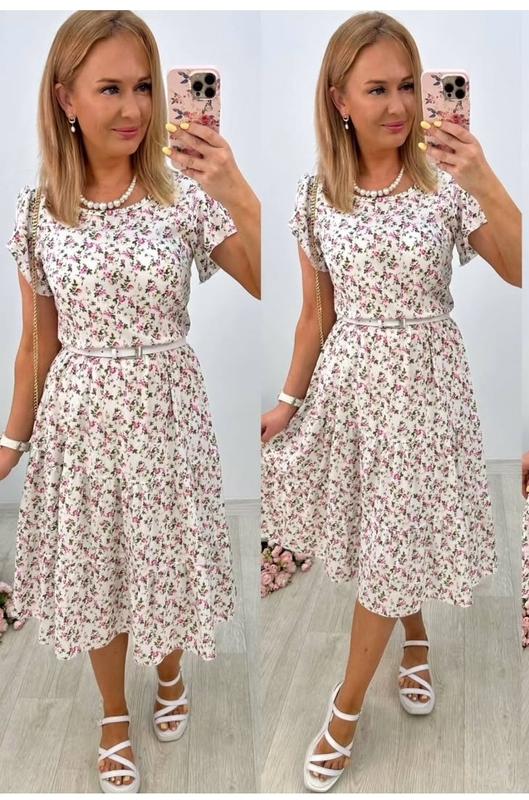 Платье из шпателя, талия на резинке, без пояса, ткань: натуральный шпатель( хлопок), цвет: белый в маленький цветочек Остался размер 46-48 длина -113 см, ог- 104 см. от-66 см. плечі-75 см. рукав-15 см.