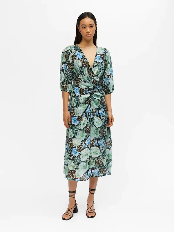 Действует акция 2+1=3, условия в профиле Платье миди в цветочный принт, ткань вискоза, легкая, зьбоку застегивается на молнию. Новая, без дефектов, размер 42 евро длина 127 см плечи 40 см ПОГ 56-60 см за счет драпировки НОТ 41-46 см НОС 59 см длина рукава 48 см