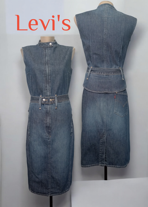 Стильное, джинсовое платье от известного бренда Levi's. Застёгивается впереди на железную молнию, воротник стоичка. Имеются впереди боковые, внутренние карманы на молнии. Поясочек застёгивается на пуговицы. Сзади накладной карман с логотипом бренда. Разрез небольшой, 21 см. Размер указан L. ✔️ ПОГ 48 ✔️ ПОТ 39 ✔️ ПОБ 49 ✔️ ширина по низу 49 ✔️ длина 111 Состояние идеальное, без следов носки.