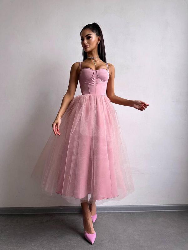 Платье миди с фатиновой пышной юбкой и верхом бюстье (р. s, m) розовое, м