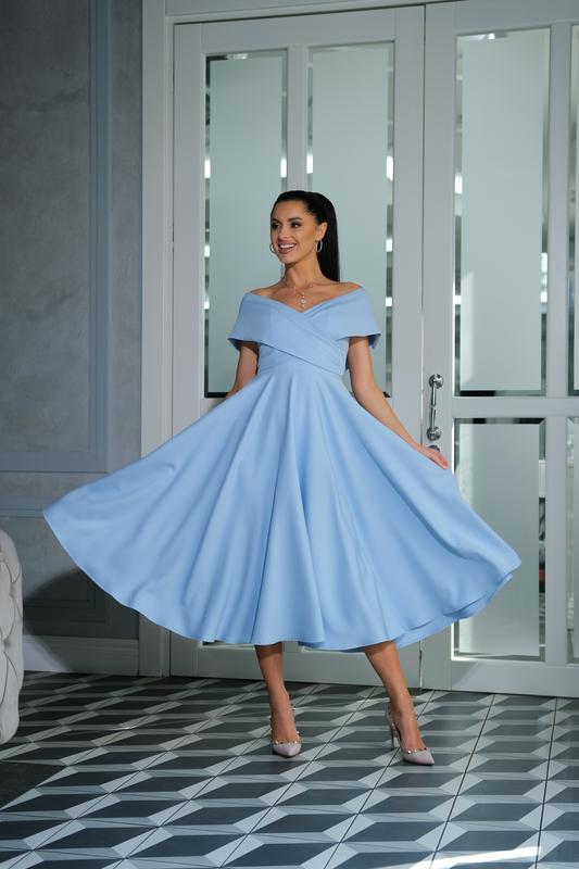 Изысканное платье миди с открытыми плечами и пышной юбкой, платье на свадьбы, платье на вы...