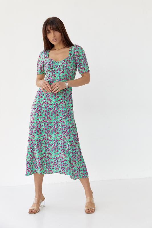 Сукня міді з розрізом у квітковий принт