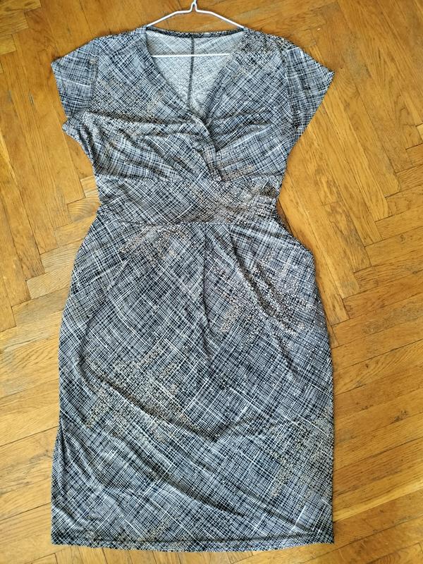 Имеет V-образное декольте, по талии регулируется пояском. Есть карманы. Хорошо тянется При покупке от 2-х товаров со страницы - скидка 10% В ассортименте, в частности, вещи таких брендов, как Rikky Hype, Zara, H&M, Reserved. Также есть украшения и женские сумки, немного обуви и верхней одежды.