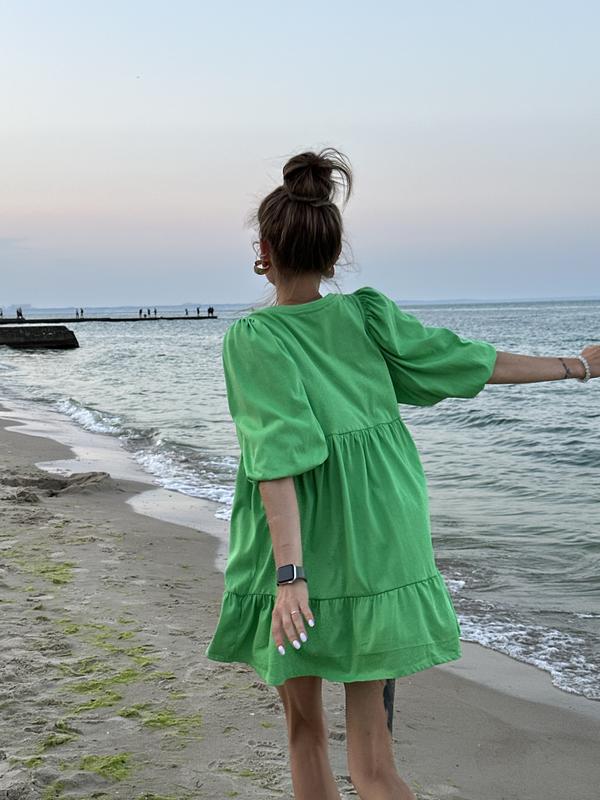 Яскрава літня зелена сукня вільного крою, платье-туника, обʼємний сарафан, оверсайз