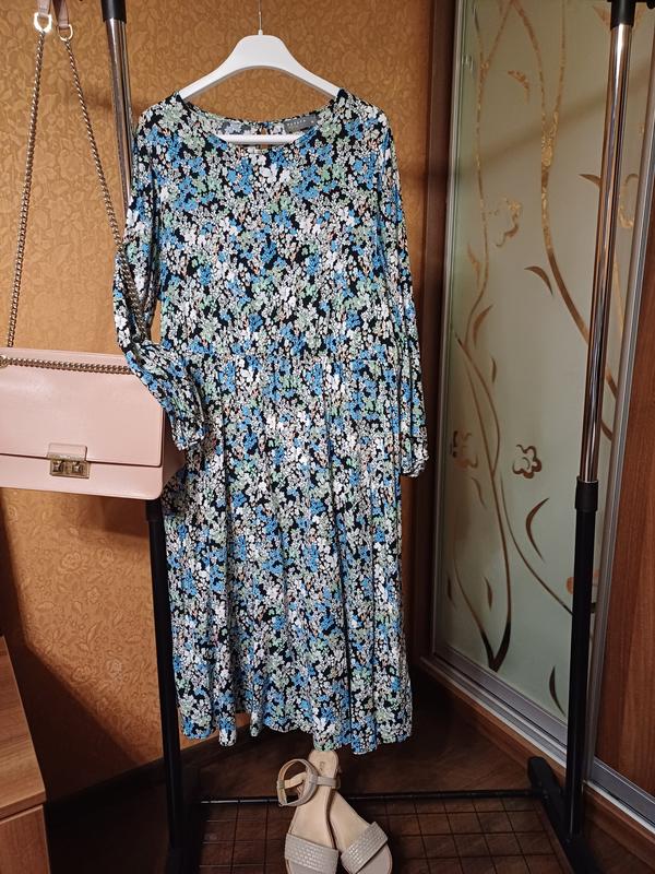 платье легкое, нежное к телу, не ощущается даже, фото не передает красоты насыщенных цветов, на 16 размер, может быть и праздничным, и в офис....