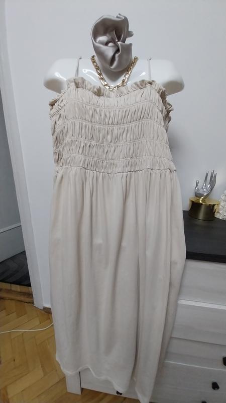 отличная летняя сукэнка в виде сарафана на бретелях. верхняя часть присборена резинками в несколько рядов. состояние отлично.