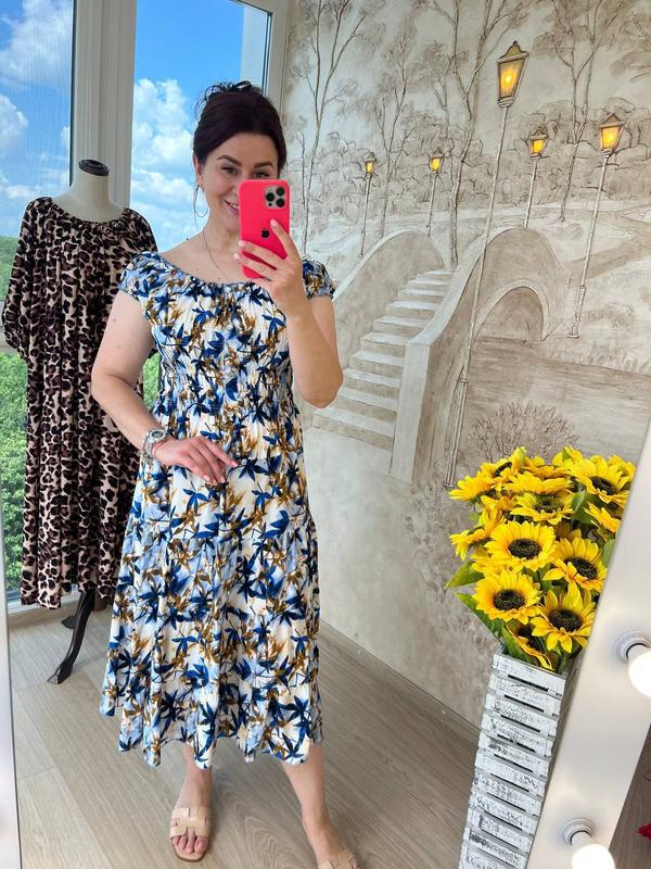легкое, комфортное и красивое платье облегающего силуэта с открытыми плечами, эффектной каскадной юбкой, украшенная пуговицами спереди идеальная платье в жаркое время года из легкого и дышащего коттона с эластаном с красивым принтом, оно отлично садится по фигуре, благодаря пришитым резиночкам на талии, подчеркивая ее красоту и стройность размеры: 50, 52, 54, 56, 58 длина 114 -118 см, объем груди от 94 см до 114 см, объем бедер от 114 см до 128 см по изделию код 2013-367, 722