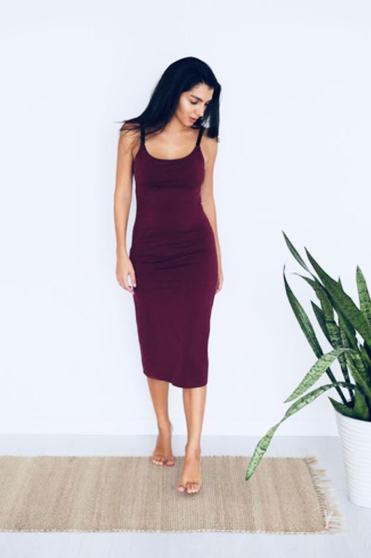 Актуальное платье майка миди лапша в рубчик глубокого ежевичного цвета! Указан размер M, подойдет на S-M-L, ориентируйтесь на замеры: Длина от плеча - 113 см ПОГ - 39 см (тянется до 55 см) ПОТ - 38 см (тянется до 55 см) ПОБ - 42 см (тянется до 60 см) Состояние новой вещи! Фото на моделях иллюстративные 19-6