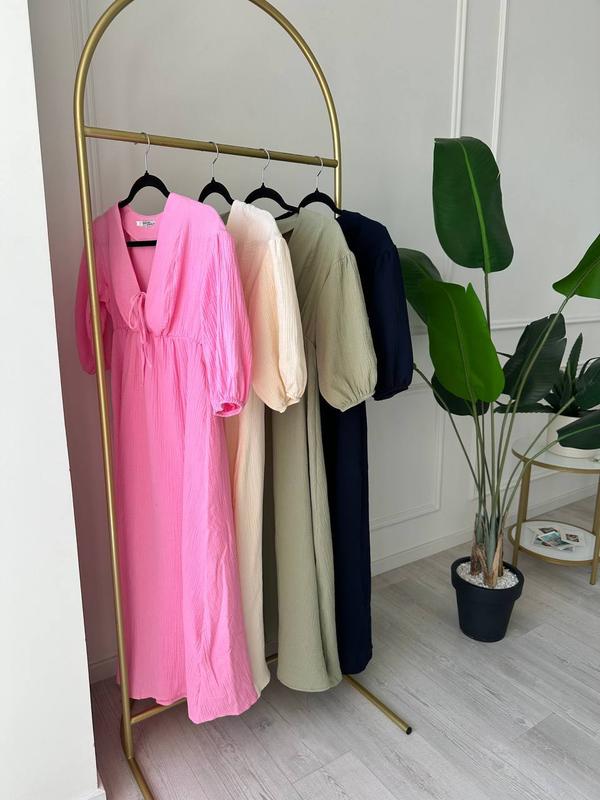 Фото и видео Реал🤩 Новинка ❤️ Сукня😍 Мод. 05 Цвета: светлый беж, розовый, масло, темно-синий Ткань: муслин Размер: 42-44, 46-48