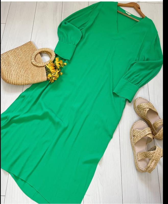 зелена сукня розмір 14(М/L) віскоза напівобхват: груди-60см талія-вільно стегна-62см рукав-58см довжина сукні-135см