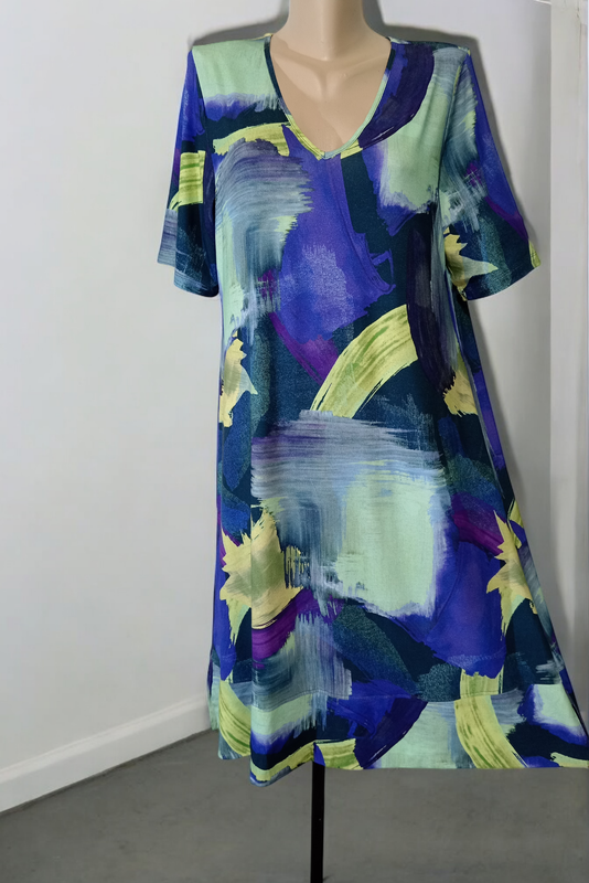 Платье трикотажное с абстрактным принтом, яркое! Крой свободный. Внизу по бокам небольшие разрезы (13 см). Ткань эластичная. Принт платья будет скрывать все недостатки! Размер указан UK 16, EUR 42. Идёт на наш 50/52 размер. 🌼 плечи 39 🌼 ПОГ 54/58 🌼 ПОТ 52/56 🌼 ПОБ 57 🌼 ширина по низу 74 🌼 ширина рукава "бицепсы" 19+3 🌼 длина 109 Состояние идеальное.