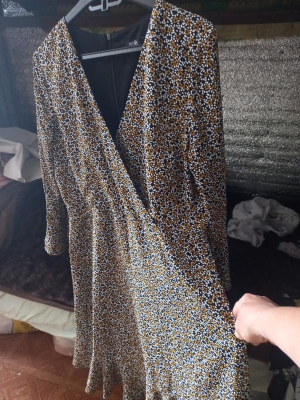 Продам женское платье.В идеальном состоянии.Ткань шелк,на подкладе полиэстер.42 европейский размер.взади застегивается на молнию.Спереди на запах.длин 97,ог 53,талия 42,об 55.