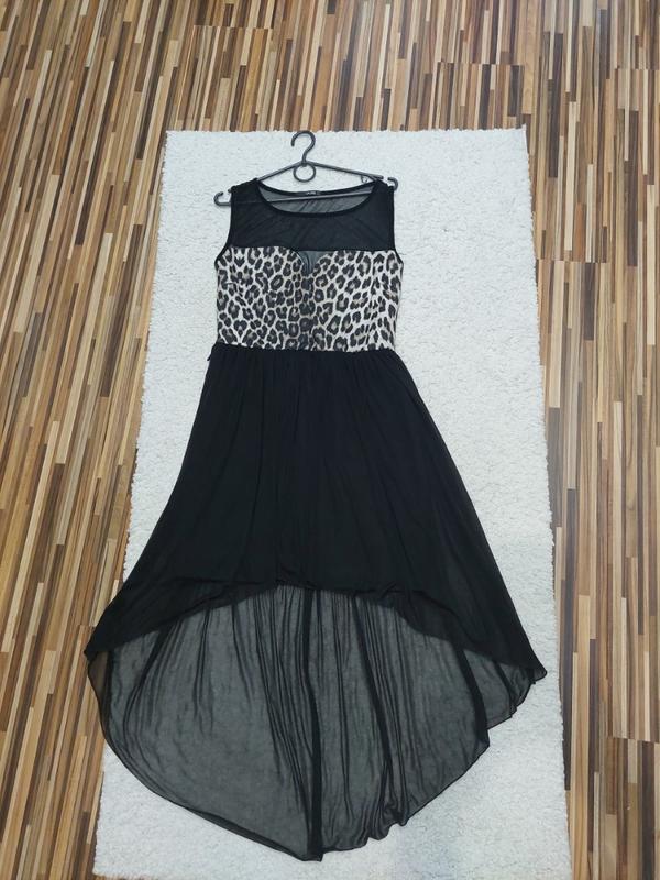 Шикарное платье с шлейфом, хвостом удлинённая лёгкая верхняя юбка ткань леопард отлично держит форму нижняя юбка не подсказывает длина спереди 91 длина сзади 130 длина по внутренней юбке 89.5см Грудь 49 хорошо тянется Талия 40 хорошо тянется Бедра 54 (внутренней юбки) тянется
