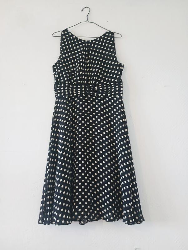 платье миди в горох с декоративным поясом с пряжкой. размер указан000 16, но наверняка это 14
