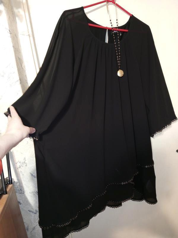 Шикарное, нарядное, черное платье туника, на трикотажной подкладке, с широким рукавом, асимметричным, ярусным низом, обрамленным серебристым, металлическим декором, большого размера, датского бренда ZIZZI. Размера -нет, но ориентируйтесь по измерениям: ПОГ - 65/71см; ПОТ-70/72см, ПОБ - умовно 74/76см; ПО канту -81см; длина от плеча - 89см; длина рукава от горловины - 56см, ПО бицепса - 29/31см Без катышков и нюансов. Девушки, пожалуйста, переспрашивайте-производите дополнительные фото и замеры.Повтвращение нет-объятия платья. См.др.объявленное-е длинные, нарядные,вечерные платья, блузы, а также 90% одежды больших размеров и не только. Подписывайтесь-ежедневные обновления одеждой больших размеров. Покупая несколько товаров -Вы экономите на пересылке, лоты комбинируются в одну посылку. Перед покупкой - прохватка: ознакомиться с рубрикой "ПРО МЕНЕ" Состав: 100% полиэстер - типа шифона; подкладка трикотажная - 95% вискоза, 5% эластан Доставка: Перешлю при полной оплатке на карточку