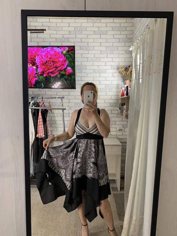 Шовкова сукня-сарафан бренду святкових суконь BCBG MAX Аzria в новому стані! Спинка оголена! 100% шовк Розмір XS, можна на S По грудях 41, під грудьми 35, стегна вільно, довжина найменшого краю 94, найбільшого - 119 см