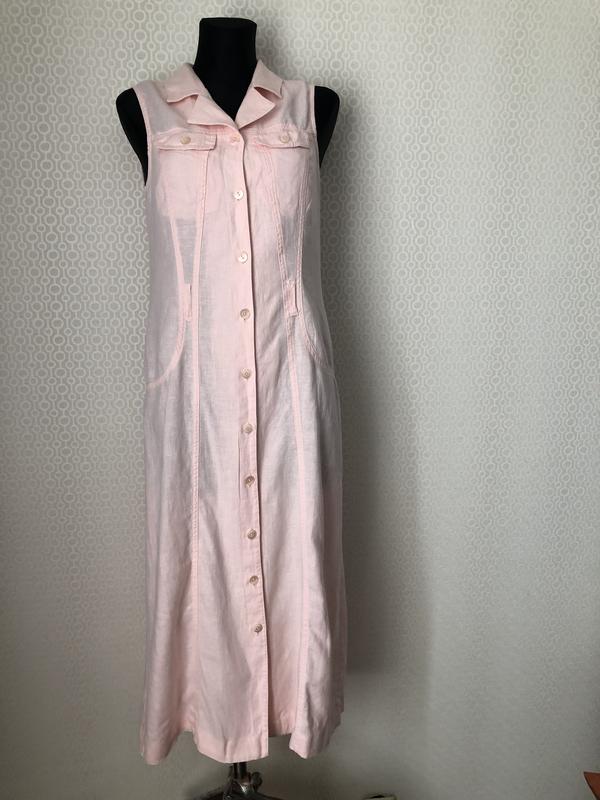 100% лен! Платье сафари нежно розового цвета от Quick Step, размер S (M). Без рукавов. Рубашечный воротник. Спереди вверху по сторонам есть два карманчика, застёгивающихся на пуговицу. Застёгивается на пуговицы по всей длине. Имеются шлёвки под пояс, но сам пояс в комплекте не идёт. Дефектов и нюансов нет. Замеры изделия в не растянутом виде, см: плечи 36, подмышки (примерно равно ПОГ) 43, ПОТ 43,5, ПОБ (Замер делаю на расстоянии 65 см от плечевого шва, если вещь короче, то по краю изделия) 52, длина 119, длина рукава . Объёмы манекена, см : плечи 39, ОГ 87, ОТ 63 ОБ 90 Отправляю Новой почтой либо наложенным платежом (при условии оплаты доставки в оба конца), либо по предоплате на карту Приват, Укрпочтой по предоплате, Meest по предоплате Продаю много фирменных вещей Airfield, Strenesse, Gerry Weber, Steilmann, Brax, Bonita, Basler, Frank Walder, Apanage, Olsen, Ulla Popken, Gardeur, Monari, Rabe, Guess, Hauber, Marks&Spencer, Concept K. Много новых вещей (с этикеткой) - можно на подарок. Смотрите другие мои объявления. Спасибо, что заглянули :-)