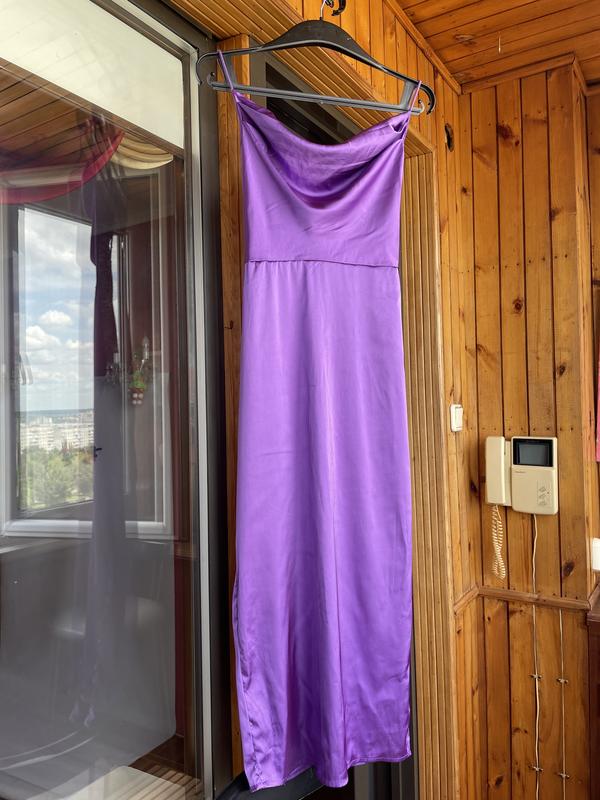 Атласна сукня фіолетова міді довга сарафан відкрита спина розмір с жіноча літня нарядна