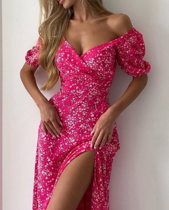 Женское летнее стильное легкое длинное платье с разрезом на ноге