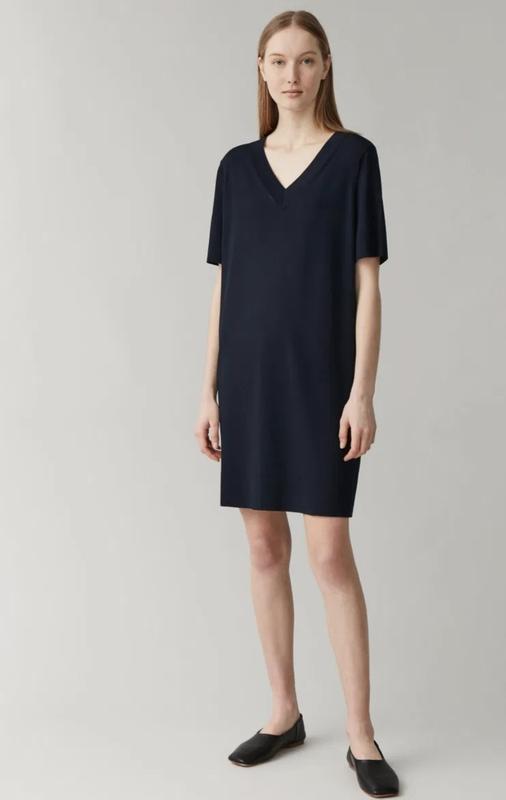 🌿темно синее платье бренда COS свободного кроя, ткань 83% вискоза, 17% полиэстр Размер:S Замеры:ПОГ 53 см, длина 98 см