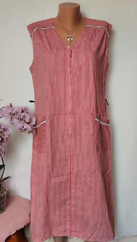 Классное хлопковое платье халат. Застегивается на молнию. Есть ушки под пояс, но пояса нет. Замеры: длина 109 пог 51-53 пот 50-52 посо 55-57.