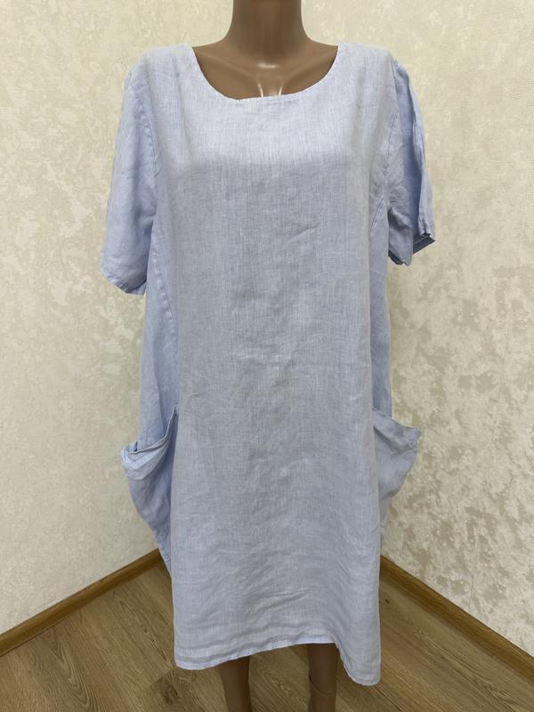 Ніжна італійська лляна сукня з кишенями. Виміри: ПП46 ПГ 60 ПТ 64 ПС 83 Низ 82 Довжина 106 Рукав 26