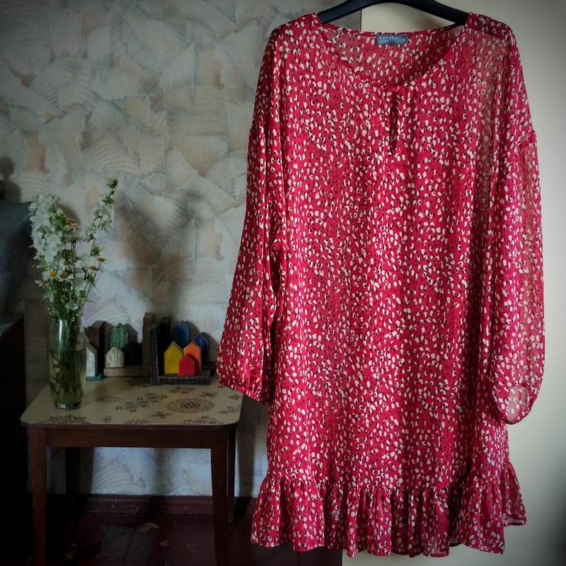 🍒22uk шифоновое платье туника в принт Papaya (на невысокую девушку будет как платье) длина от плеча 86 см длина рукава от горловины 66 см полуобхват груди 67 см полу охват талии 71 см полуобхват бедер 70 см замеры подкладки платья майки длина 75 см полуобхват груди 58-66 см тянется полуобхват бедер 67-74 см тянется бретели регулируются 🍒100% полиэстер шифон, подкладка 100% полиэстер 🍒новая без бумажной бирки # 4 #