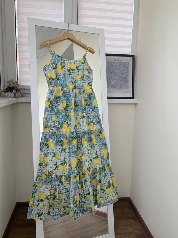 Сукня у лимони Размер 10, S Полуобхват груди 41 см, сзади на резинке Полуобхват талии 35 см, сзади на резинке Длина без бретелек 115 см, бретельки регулируются Есть подкладка Материал: хлопок Состояние: идеальный