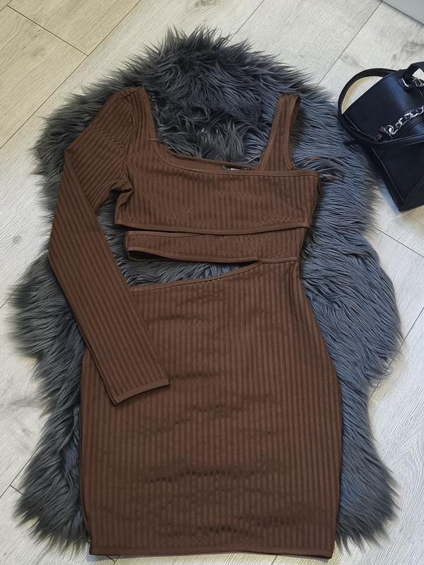 Эластичная перламутровая, с утяжкой, с разрезами на талии на один рукав, со стороны молния, шоколадный цвет,новая, рубчик