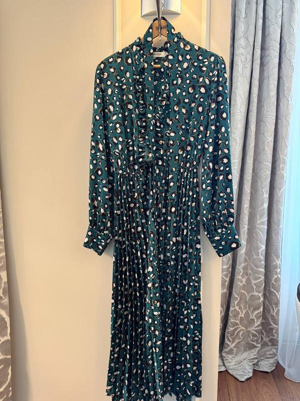 платье зеленоеное с леопардовым принтом и плисерированный низ