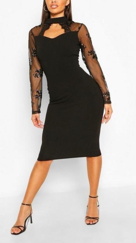 Ax paris. англия в наличии. элегантное платье миди с прозрачными рукавами