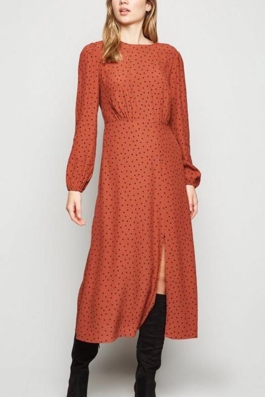 Міді віскозна сукня з розрізом на нозі , розмір М.На поясі позаду резинка. Плечі 40 см Пог 48/51 см тянеться Талія 39/47 см резинка по заду Довжина 120 см Рукав 60 см